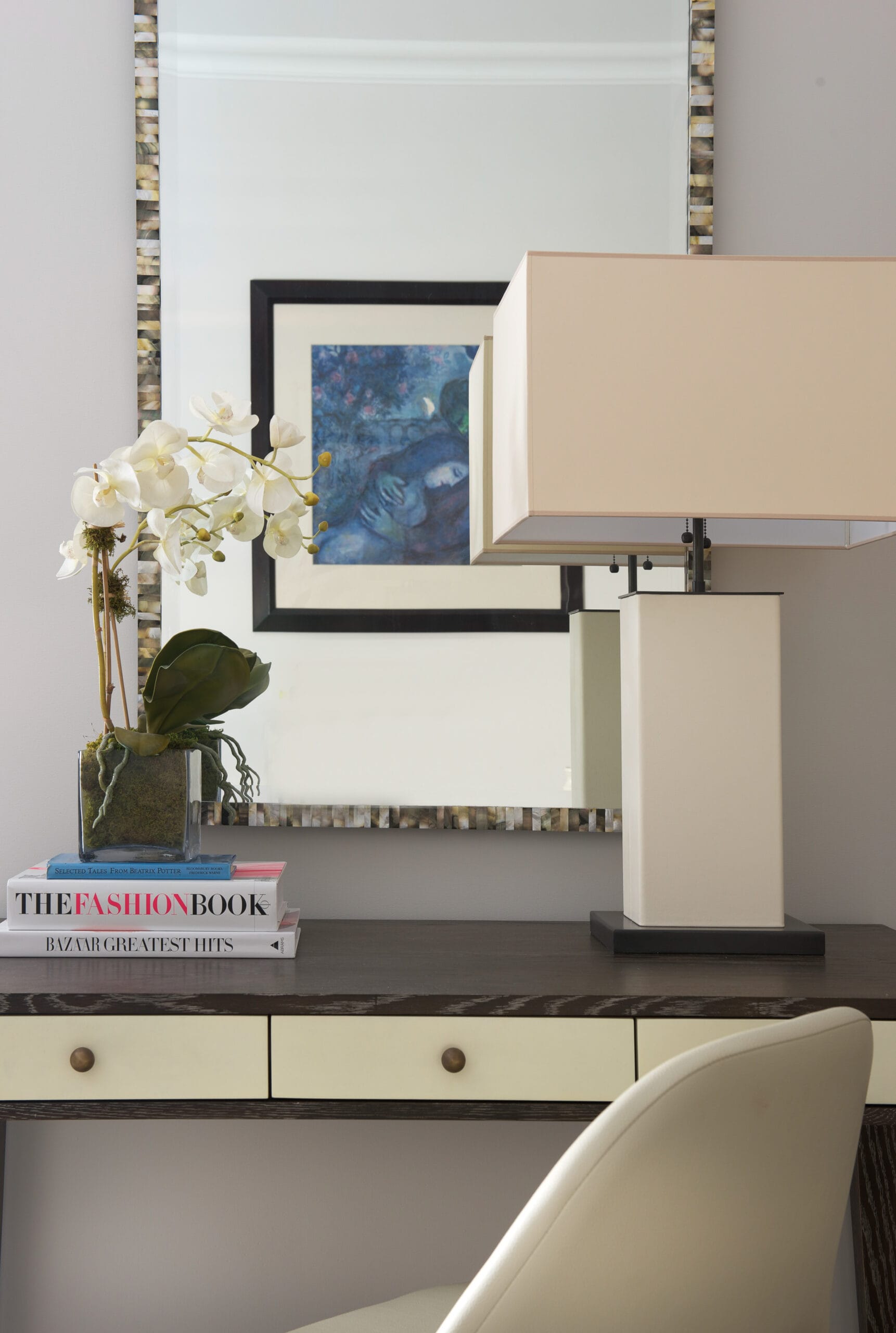 Curating an environment that exudes both sophistication and comfort, each room was thoughtfully composed for a harmonious blend of color, artistry, and historical elements while highlighting our clients extensive art collection.