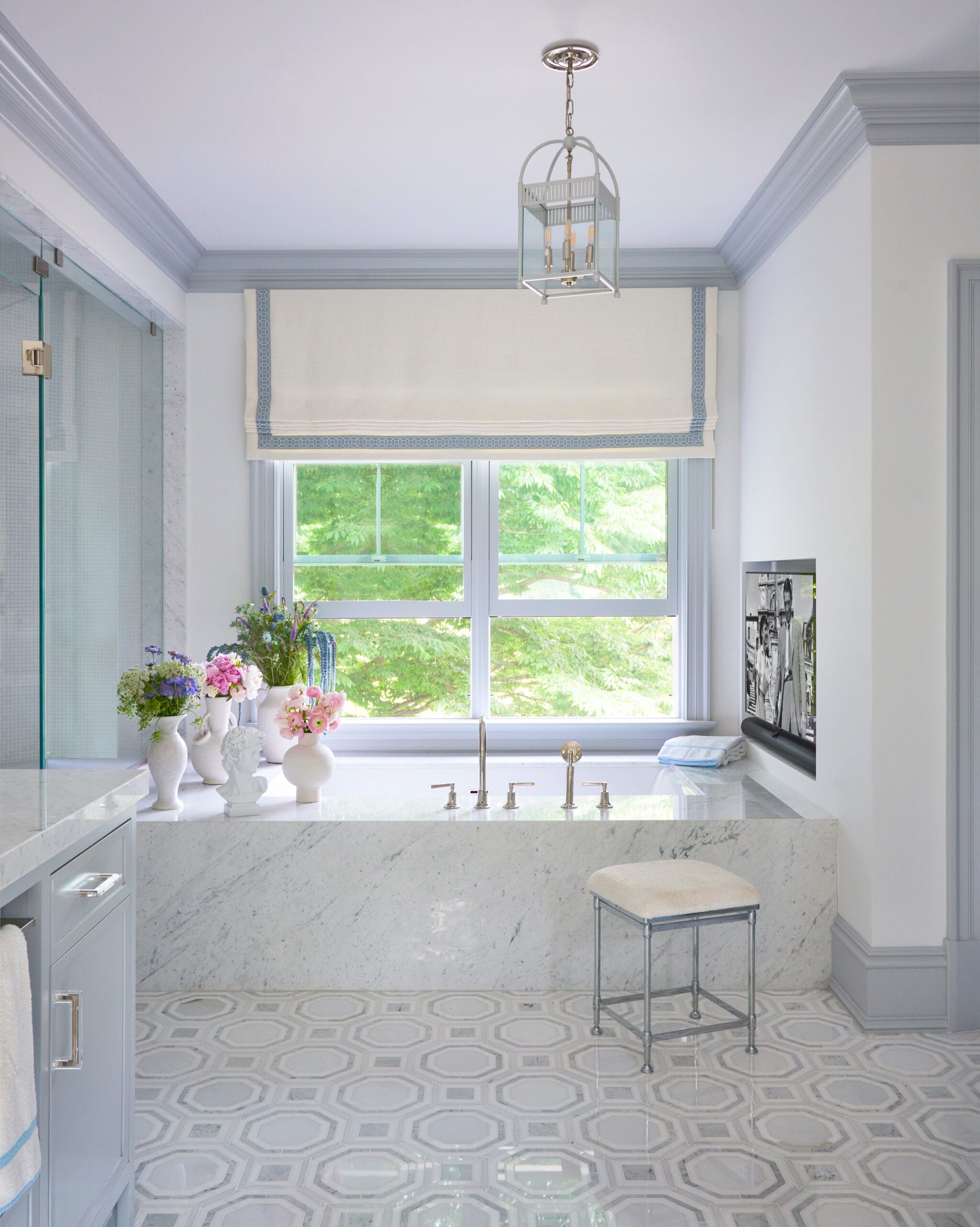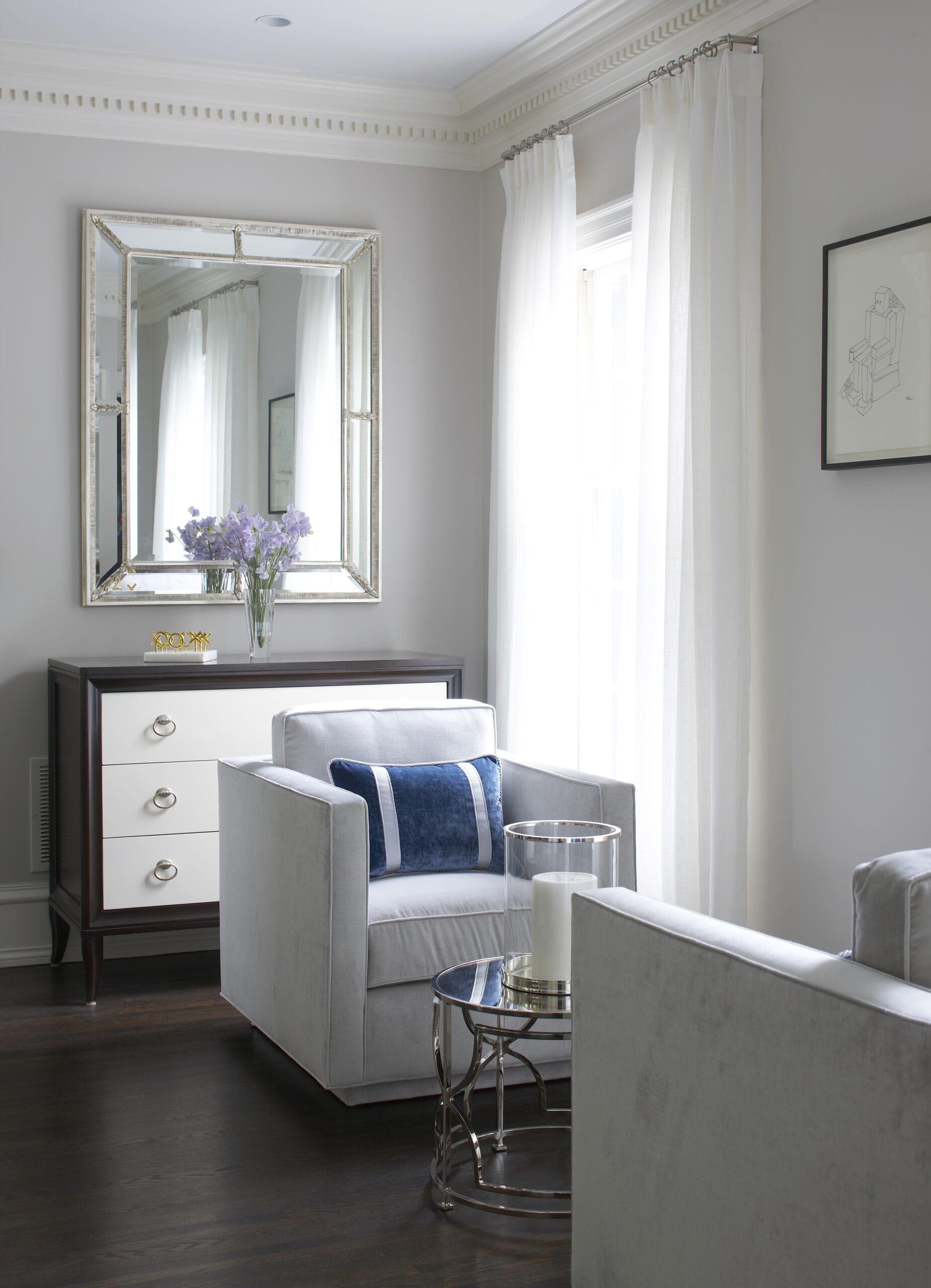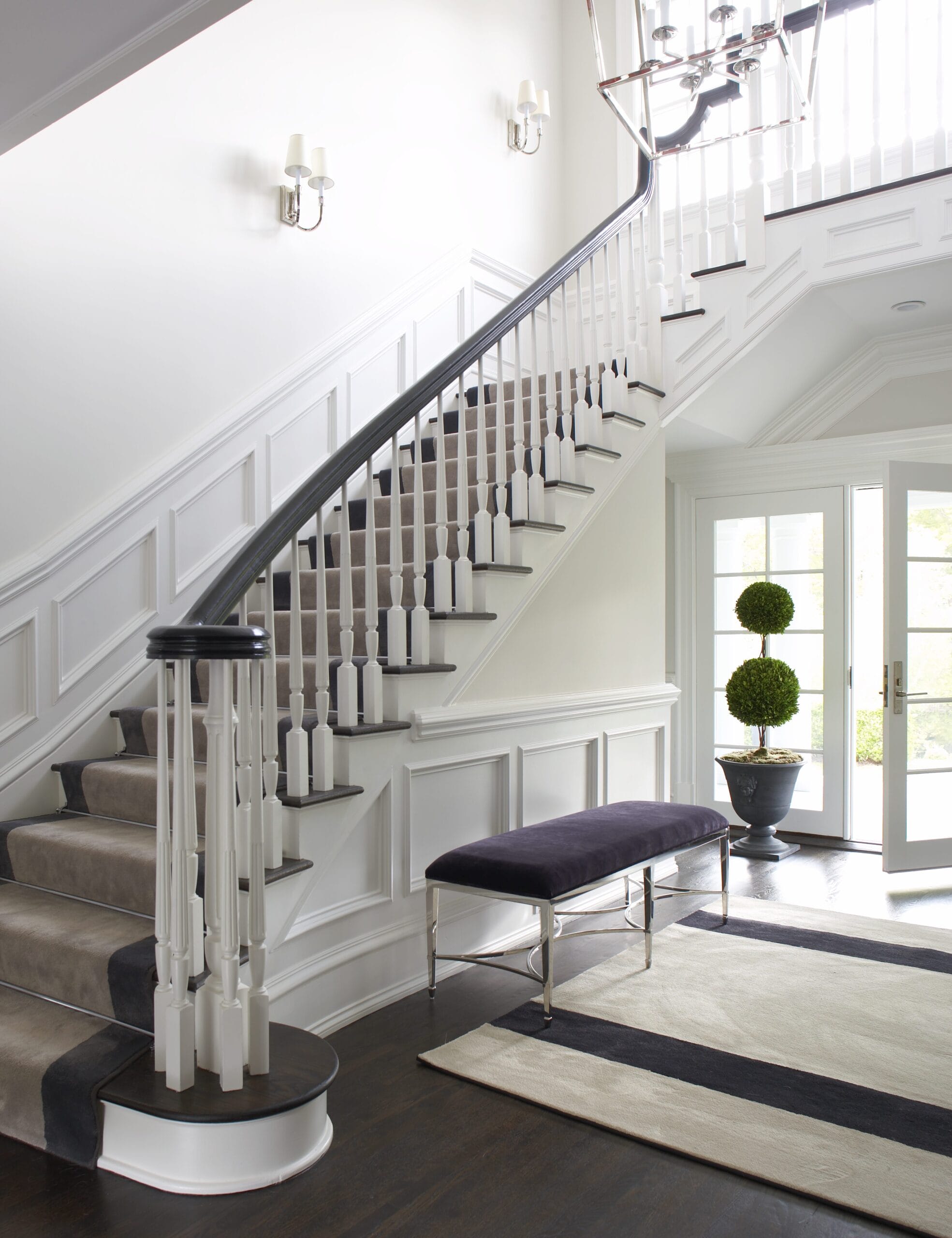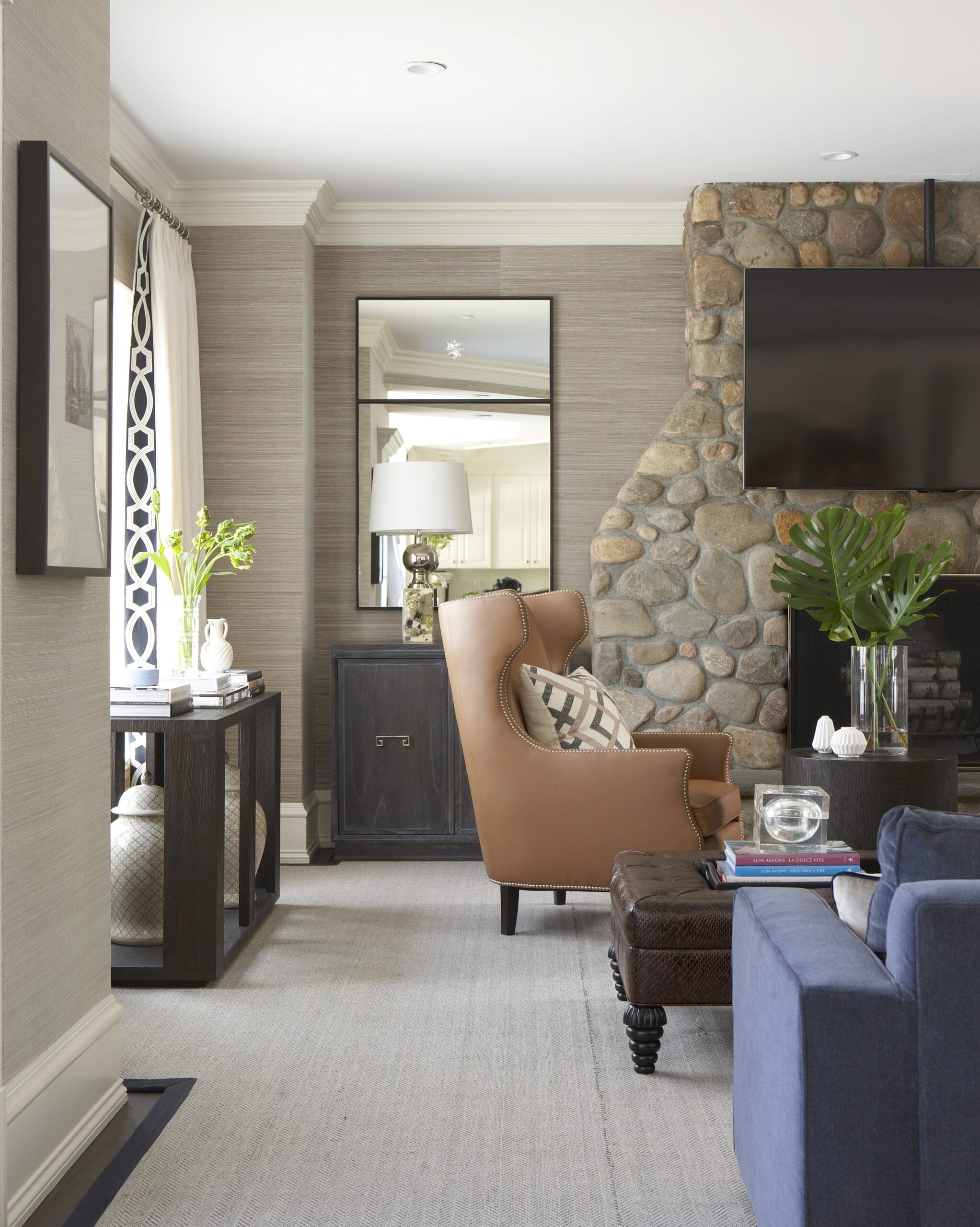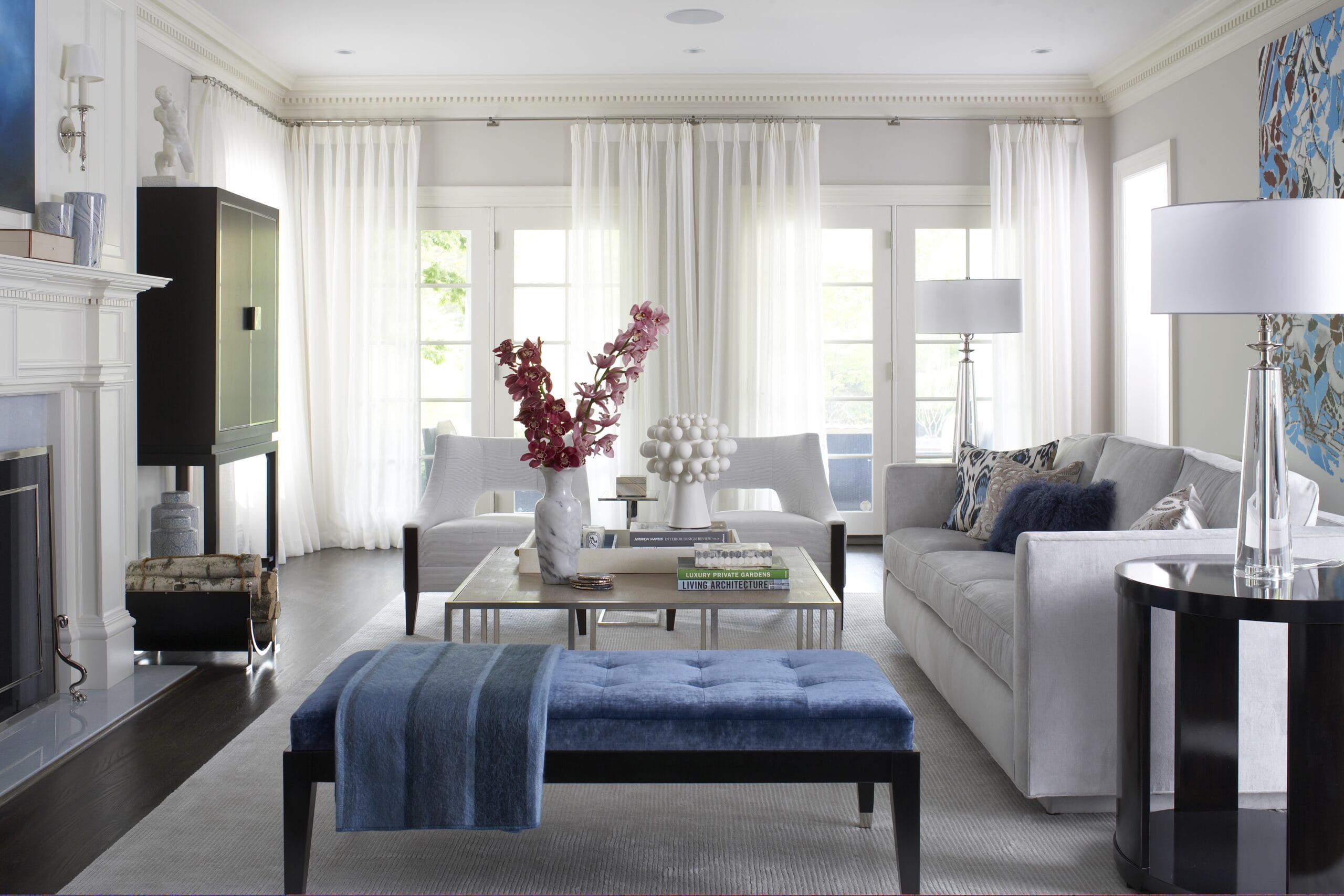 The study, a standout space that never fails to impress guests, boasts a chic black satin lacquer finish that adds a touch of drama and refinement. It’s a space that effortlessly combines form and function, serving as both a private retreat for focused work and a sophisticated setting for entertaining.