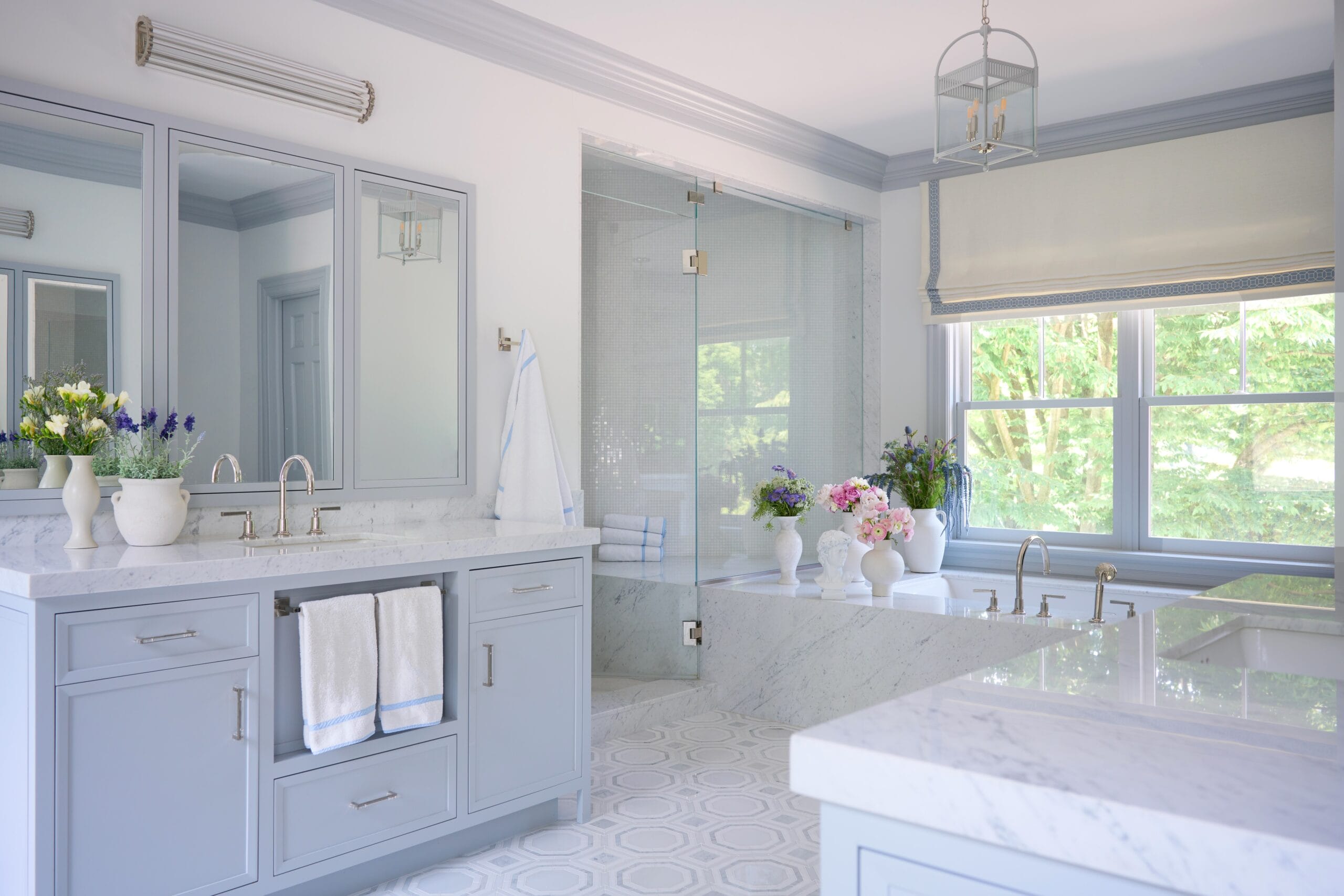 The color palette, featuring subtle blue tones throughout, evokes a sense of tranquility and sophistication, while the use of high-quality, weather-resistant fabrics ensures both durability and timeless style.